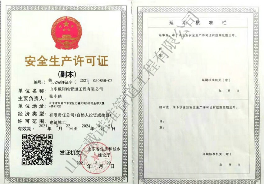 管道非開挖修復(fù)工程服務(wù)企業(yè)資質(zhì)證書