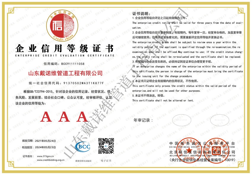 管道非開挖修復(fù)工程服務(wù)企業(yè)資質(zhì)證書